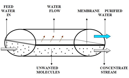 普通的純水機可以將顆粒從水中分離出來。但這些過濾器的孔隙比較大。無法過濾溶解在水中的分子。而超濾純水機采用的是半透膜,它是一種多層的薄片,其孔徑小到只有水分子才可以通過,不但能夠作為溶解固體如鹽和其他化學物質的屏障。即使細菌和病毒這種非常小的物質也會被過濾出來。