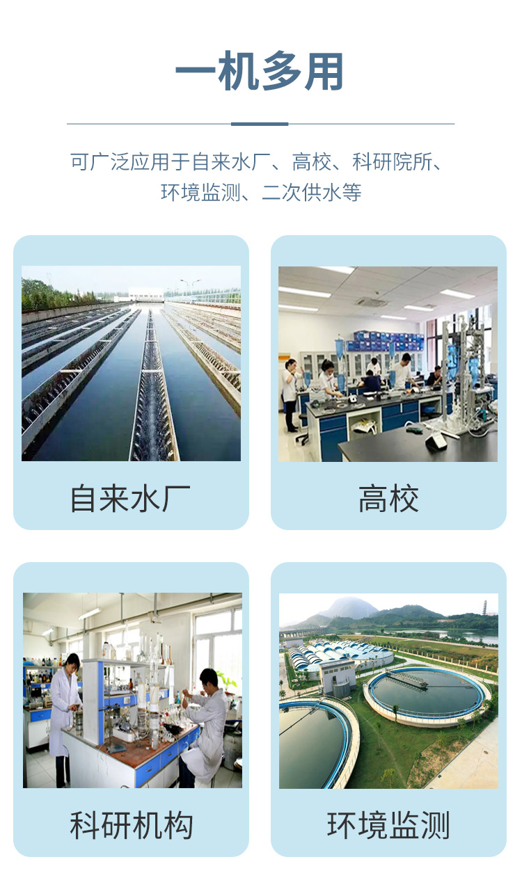 本儀器可用于測定飲用水中的消毒劑指標(biāo)余氯、總氯、二氧化氯等參數(shù)。本儀器可廣泛用于水廠、食品、化工、冶金、環(huán)保及制藥等行業(yè),是常用的戶外及實(shí)驗(yàn)室常用儀器。
