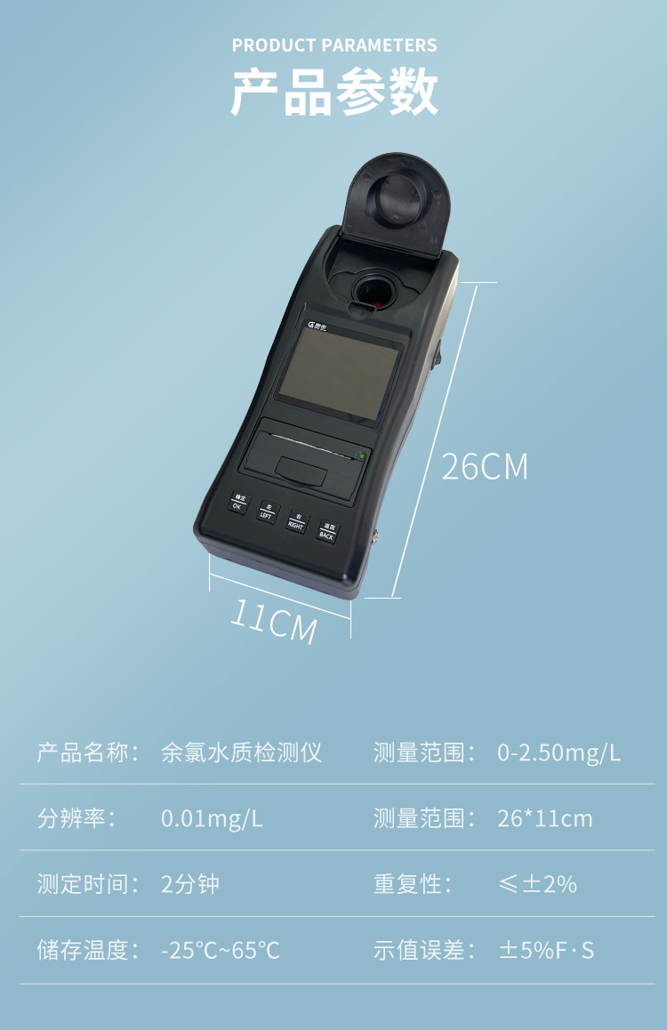氯專項(xiàng)水質(zhì)檢測儀參數(shù)配置: