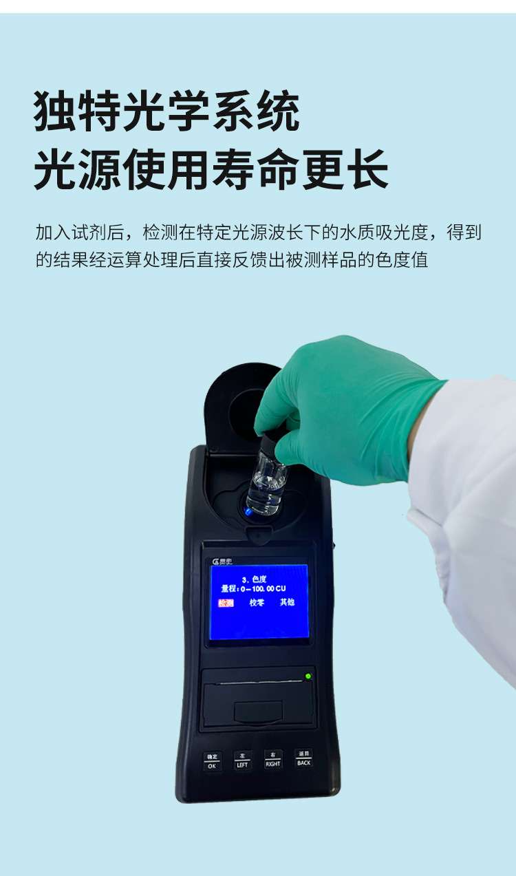 貫奧色度檢測儀可快速準(zhǔn)確測定地表水、地下水、城市污水及工業(yè)廢水中色度指標(biāo),濃度直讀;可廣泛用于水廠、食品、化工、冶金、環(huán)保及制藥行業(yè)等部門。儀器是由單個的固定波長固定用途的分光光度計糅合而成的,采用分光光度法原理對各參數(shù)進(jìn)行測量,在儀器中建立不同參數(shù)的濃度顯色程度與吸光度的線性曲線,儀器通過對顏色的辨別,得出被測水樣的濃度。本儀器采用全中文菜單,操作簡易易懂,使用方便快速測量準(zhǔn)確度高。